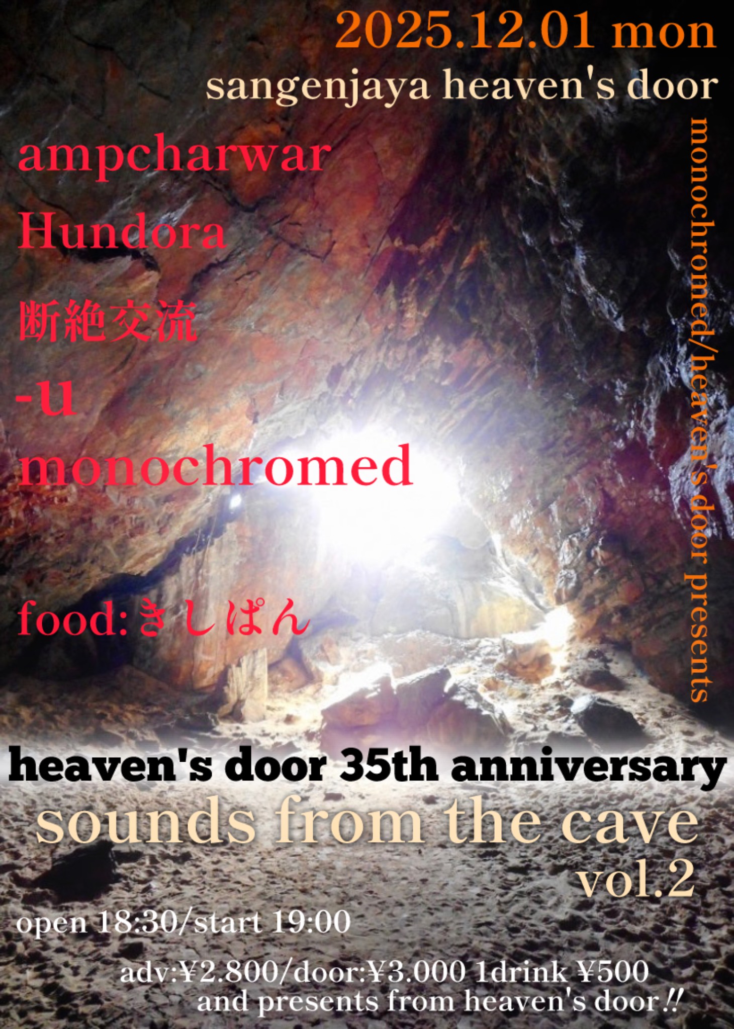 ~HEAVEN’S DOOR 35th Anniversary~ monochromed&HEAVEN’S DOOR presents「sounds from the cave vol.2」 |